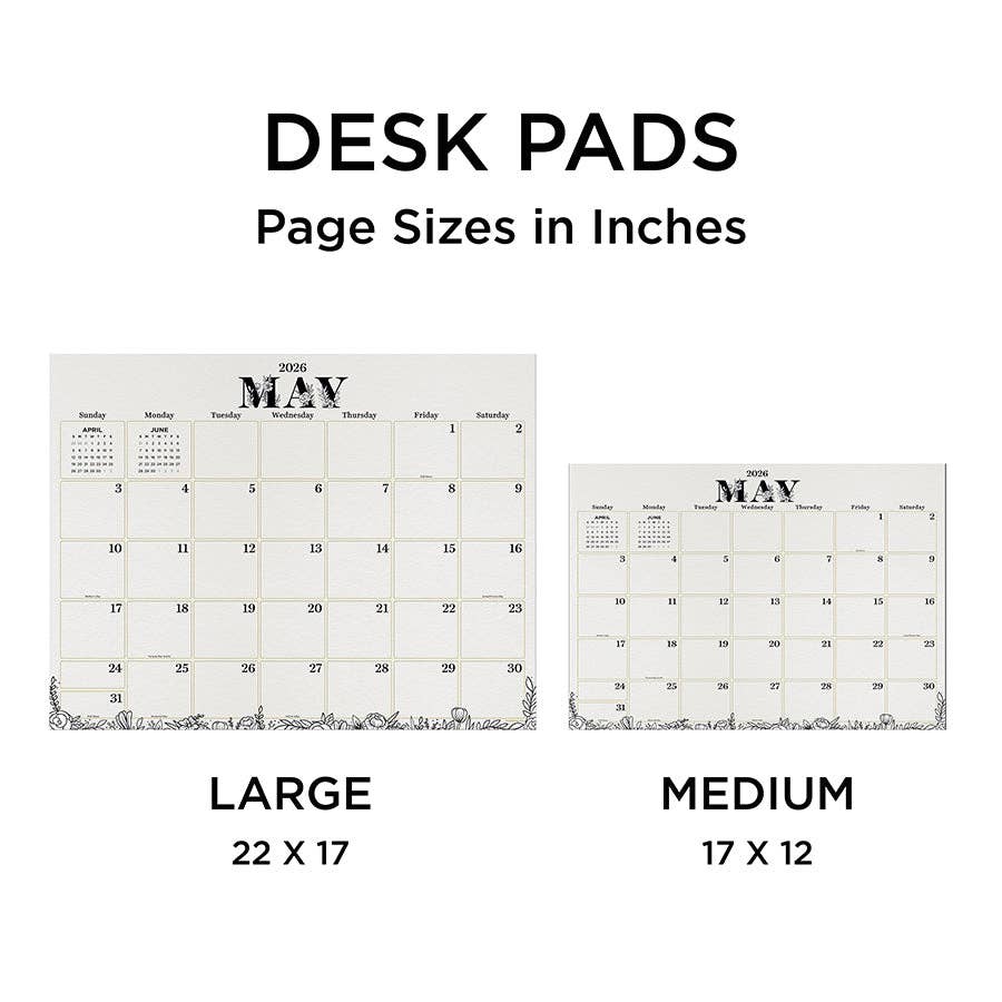2026 Floral Medium Desk Pad Monthly Blotter Calendar