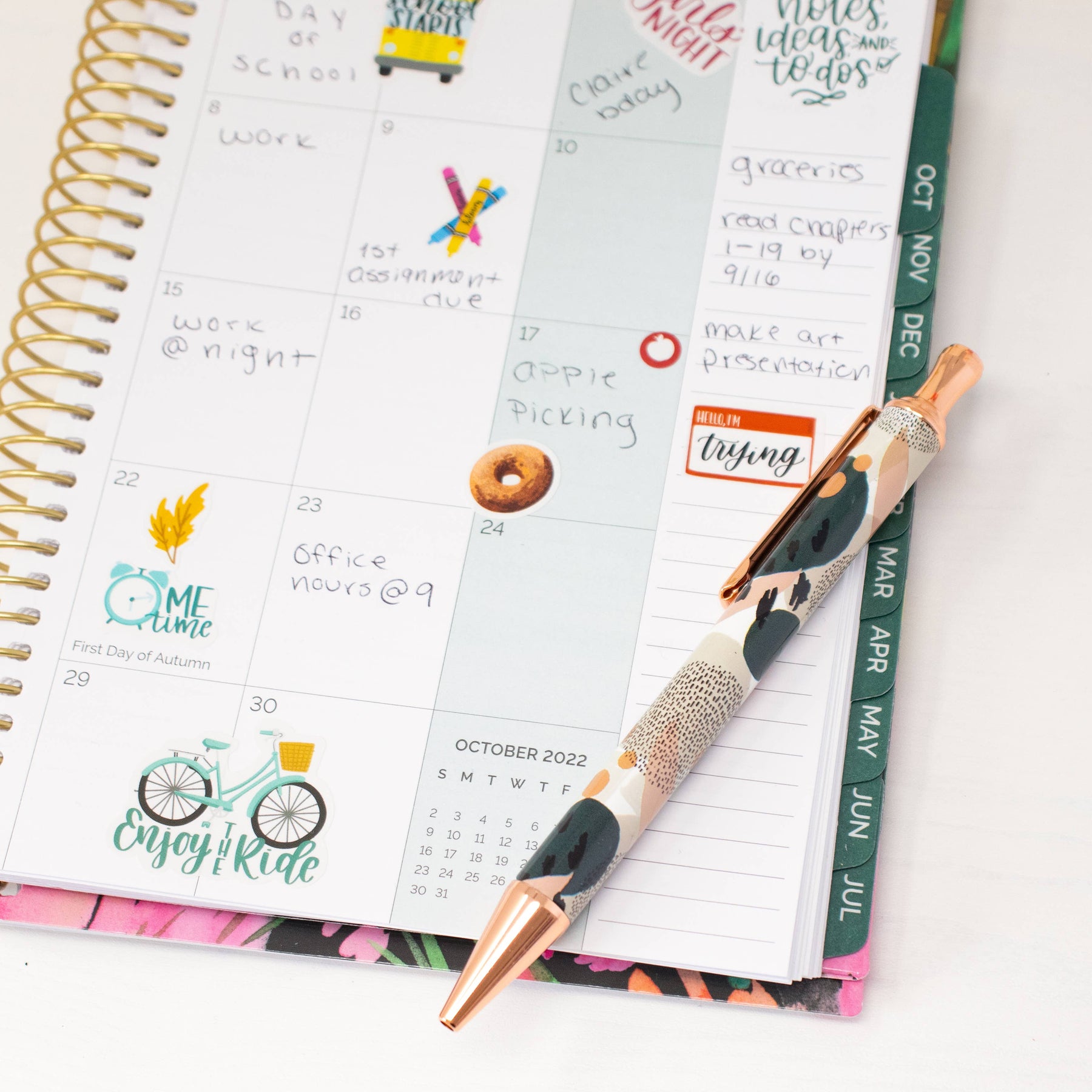 • Rose gold clip top to attach into your planner's binding