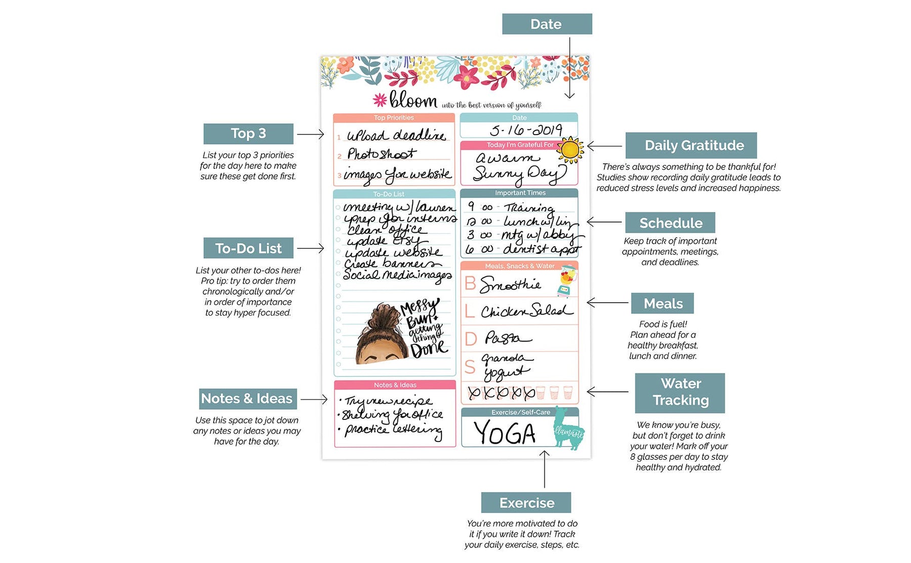 bloom daily planners® Floral Dots 6" x 9" Daily To-Do Pad is a beautifully designed daily planner to help you stay organized, focused, and intentional. Perfect for professionals, students, and anyone who loves paper planning, this pad makes a thoughtful holiday gift, stocking stuffer, or addition to any stationery collection.