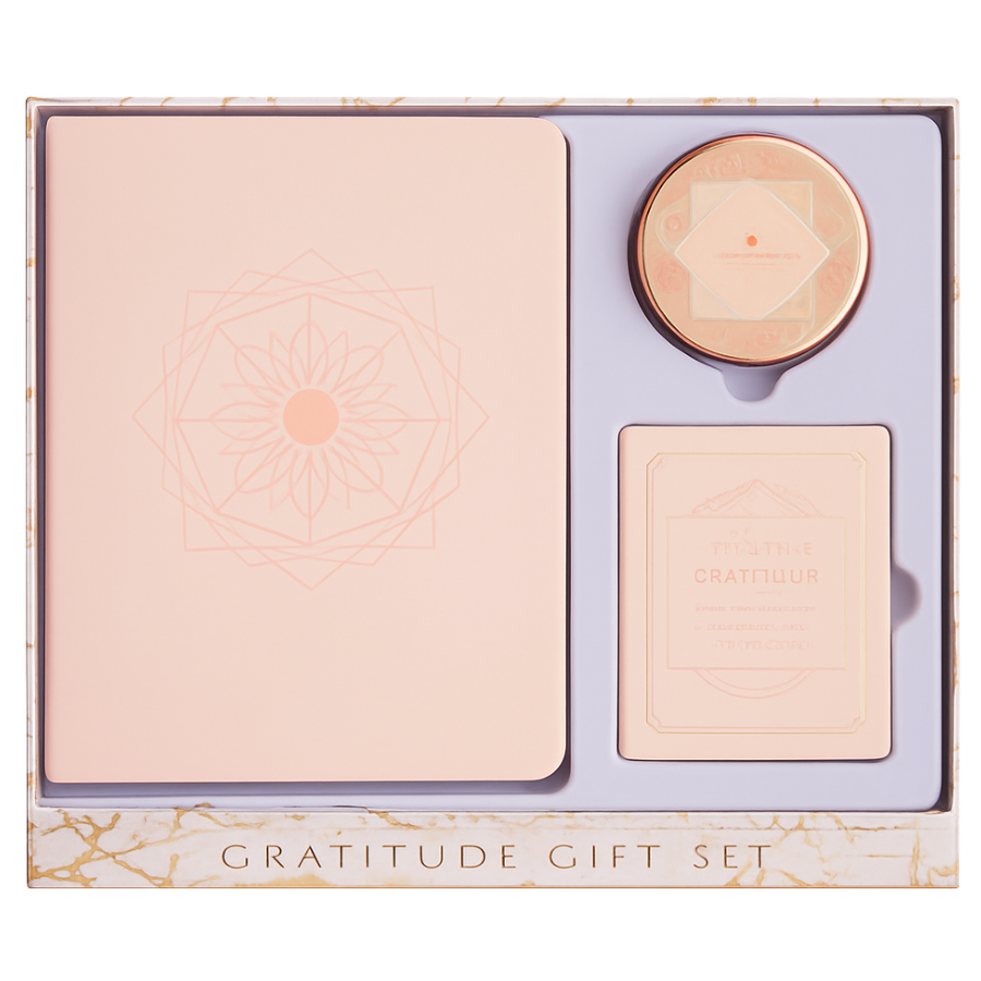 This beautiful gift set includes a grapefruit and rose scented candle, a mini book filled with inspiring quotes about gratitude , and a 90-day reflection journal to record, celebrate, and preserve important moments of thanks..