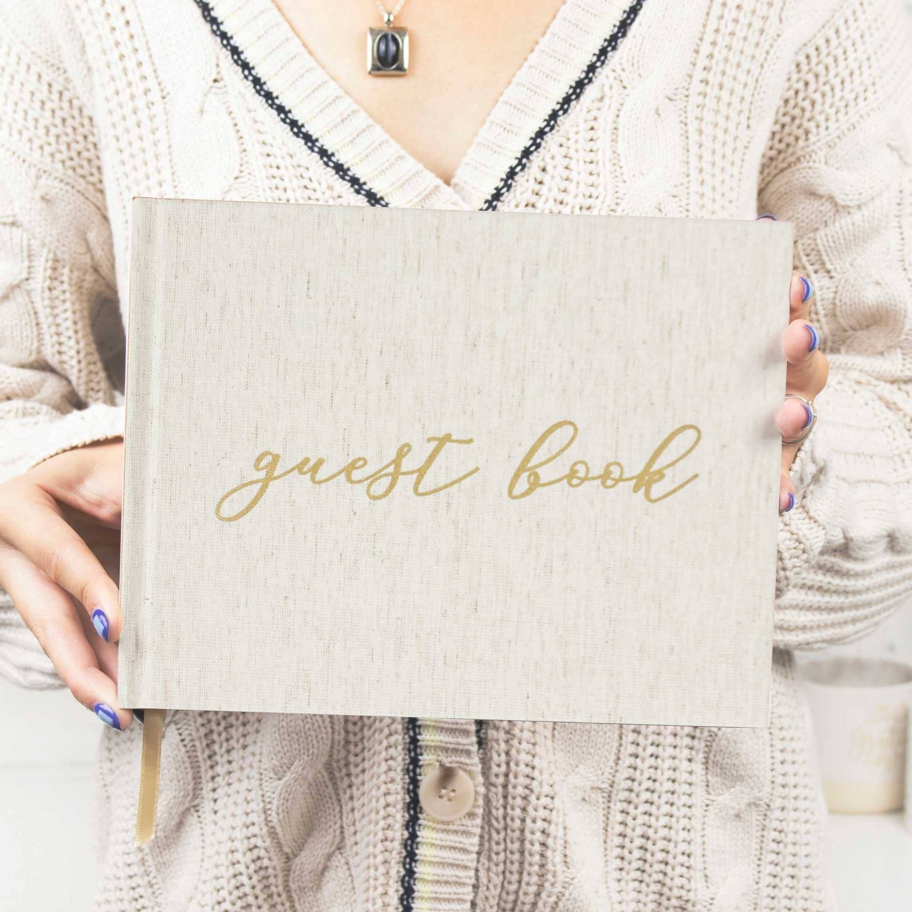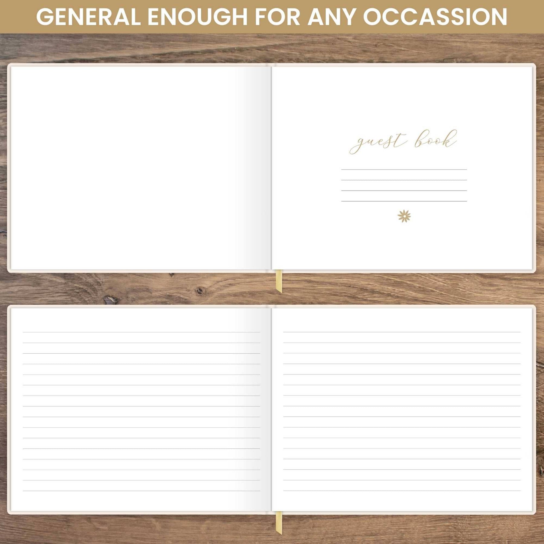 The 7" × 9" case-bound guest book features a gold ribbon bookmark and 120 blank-lined pages of thick 140gsm paper, ideal for guests to write messages of any length. Capture memories and create a lasting memento for any special occasion.